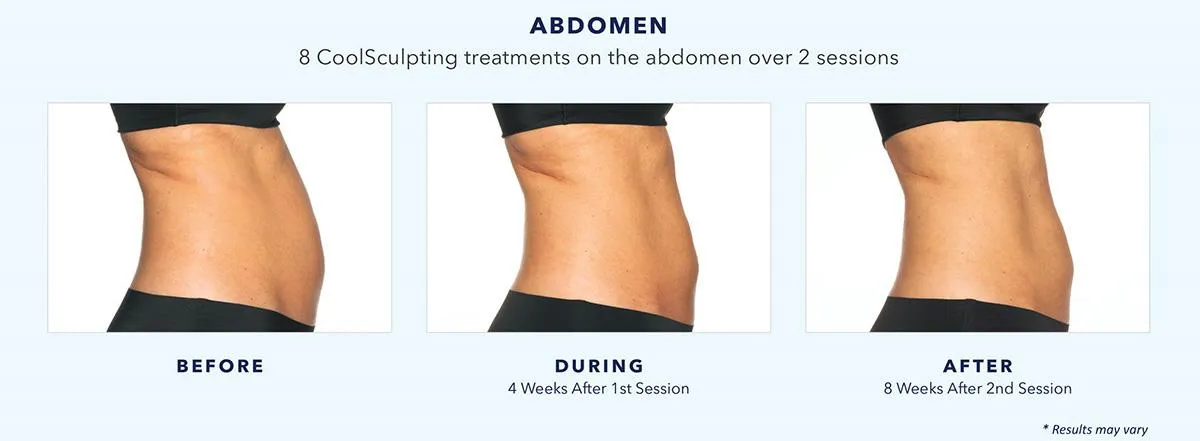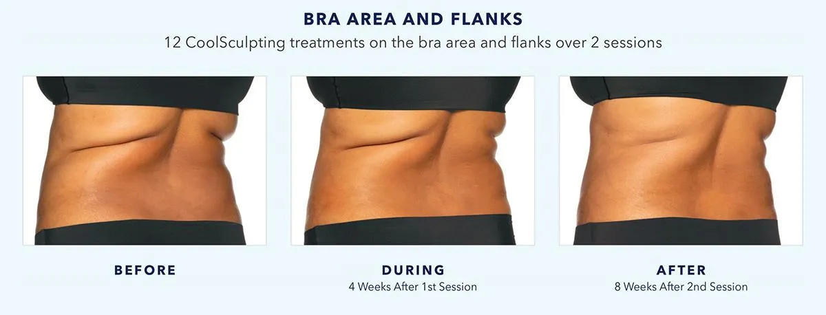 CoolSculpting® is FDA-cleared to treat visible fat bulges on the abdomen, flank, thigh, bra fat, back fat, upper arm, and under the buttocks, chin, and jawline. It is also FDA-cleared to affect the appearance of lax tissue with submental area treatments. CoolSculpting® is not a treatment for weight loss. Some common side effects include temporary numbness, discomfort, and swelling. Rare side effects may occur. CoolSculpting® may cause visible enlargement in the treated area after treatment and requires surgical intervention for correction. Ask your doctor if CoolSculpting® is right for you. See additional Important Safety Information at coolsculpting.com.